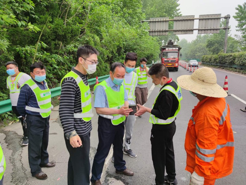 5月7日下午,安徽省交控集團(tuán)養(yǎng)護(hù)管理中心主任張尤平、養(yǎng)管分中心副主任陶明路、分管安全工程師舒陽一行到2019-2021年度高速公路銑刨修復(fù)工程施工現(xiàn)場檢查指導(dǎo)工作。