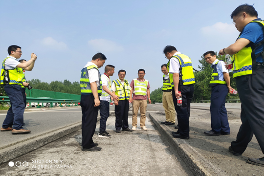 6月27日合肥交投集團董事長黃惠民等一行到我公司中標承建的2019-2021年度安徽省部分高速公路路面修復養(yǎng)護工程02標北環(huán)高速養(yǎng)護施工現(xiàn)場檢查并慰問現(xiàn)場工作人員。黃惠民聽取了現(xiàn)場負責人譚宜飛的匯報后,對我公司的施工方案、工程進度給予充分肯定。因2019年工期緊、任務重,黃惠民要求在保證施工質(zhì)量和安全的基礎上,加快施工進度。