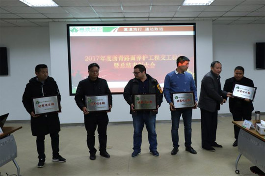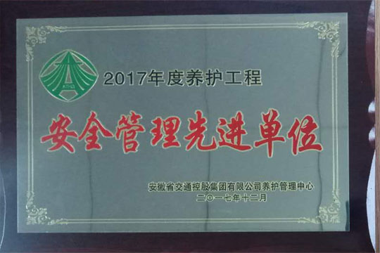 2017年12月14日,2017年度瀝青路面養(yǎng)護(hù)工程交工驗(yàn)收暨總結(jié)表彰大會(huì)在合肥召開,六安市交通公路實(shí)業(yè)有限公司2017-2019年度安徽省部分高速公路瀝青路面專項(xiàng)養(yǎng)護(hù)工程03標(biāo)項(xiàng)目經(jīng)理部榮獲2017年度養(yǎng)護(hù)工程”優(yōu)秀項(xiàng)目部“和”安全管理先進(jìn)單位“稱號(hào)。