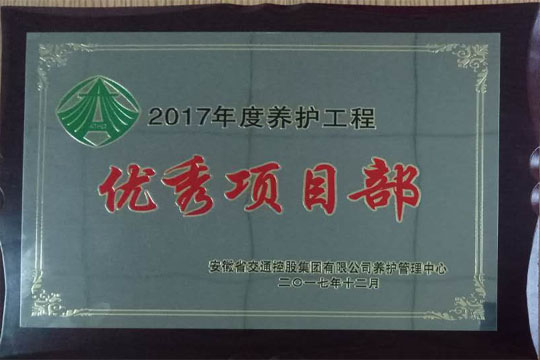 2017年12月14日,2017年度瀝青路面養(yǎng)護(hù)工程交工驗收暨總結(jié)表彰大會在合肥召開,六安市交通公路實業(yè)有限公司2017-2019年度安徽省部分高速公路瀝青路面專項養(yǎng)護(hù)工程03標(biāo)項目經(jīng)理部榮獲2017年度養(yǎng)護(hù)工程”優(yōu)秀項目部“和”安全管理先進(jìn)單位“稱號。